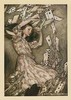 "There!" cried Alice, quite forgetting in the flurry of the moment how large she had grown in the last few minutes, and she jumped up in such a hurry that she tipped over the jury-box with the edge of her skirt, upsetting all the jurymen on to the heads of the crowd below, and there they lay sprawling about, ...
